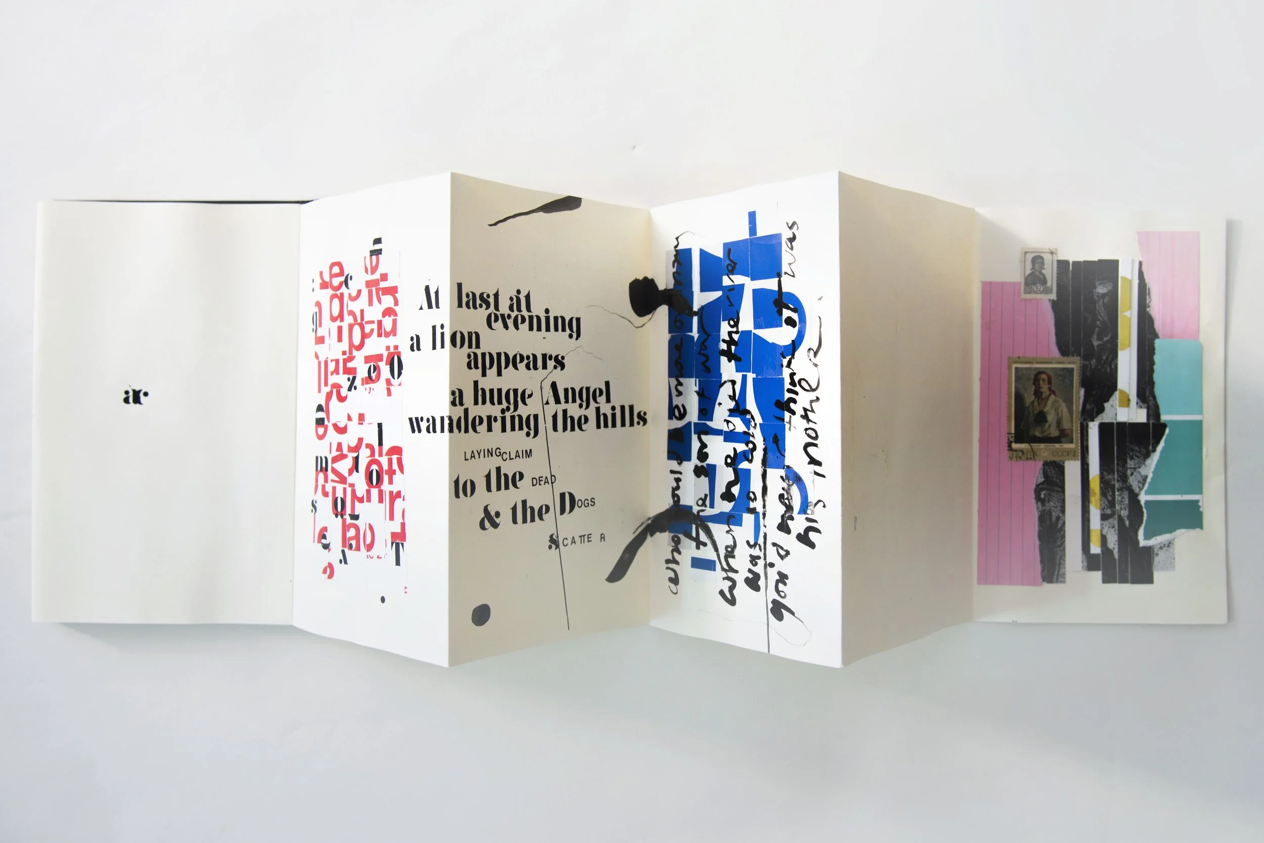 This visual response involves the use of ink, Letraset, collage, and typography, culminating in an unfolding 12-panel concertina illustration. This artwork is a captivating interpretation of Alice Oswald’s "Memorial," a reimagining of Homer’s Iliad. Oswald’s poignant adaptation extracts and presents all the deaths within the narrative as an elegiac cenotaph, creating a luminous and haunting.
